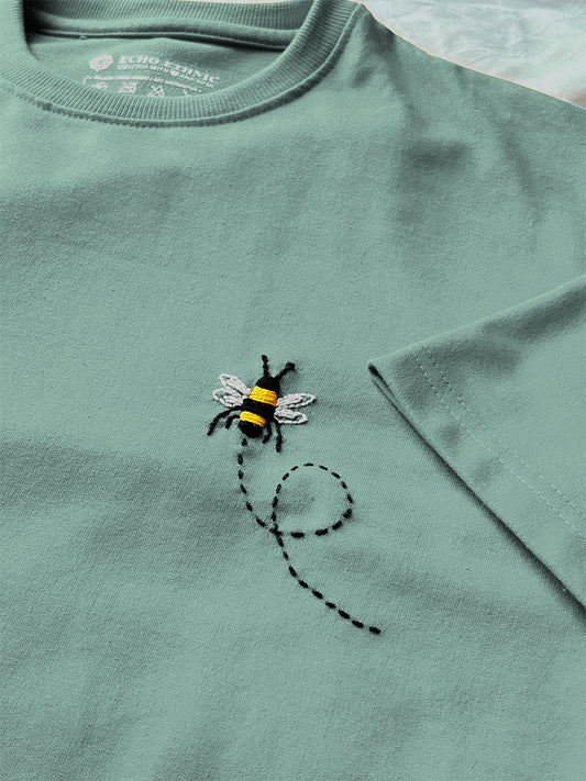 Light Green - Unisex Hand Embroidered Oversize T-Shirt