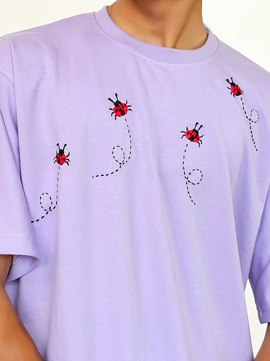 Lucky Bug Hand Embroidered Oversize T Shirt Unisex