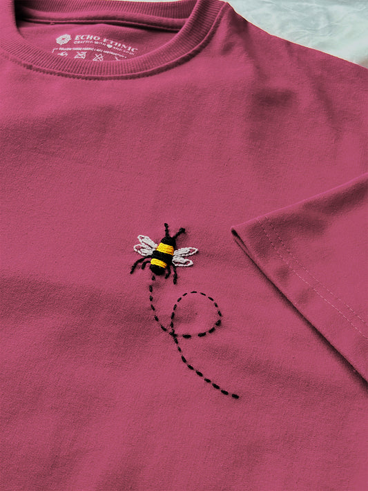 Pink - Unisex Hand Embroidered Oversize T-Shirt