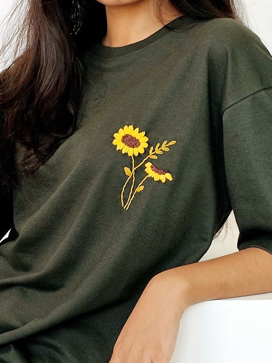 Sunshine Vibe Hand Embroidered Oversize T Shirt Unisex