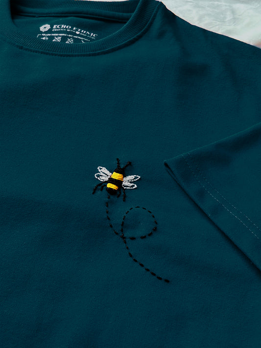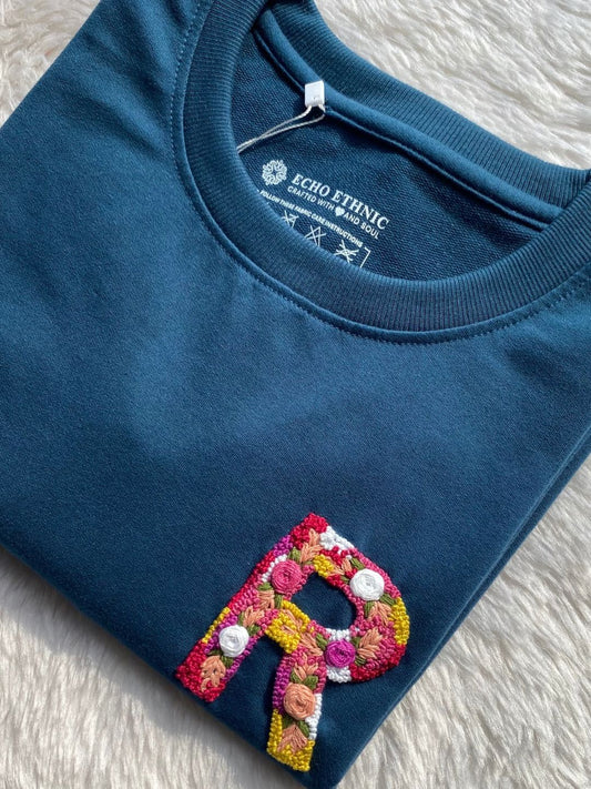 Teal Blue - Unisex Hand Embroidered Oversize T-Shirt