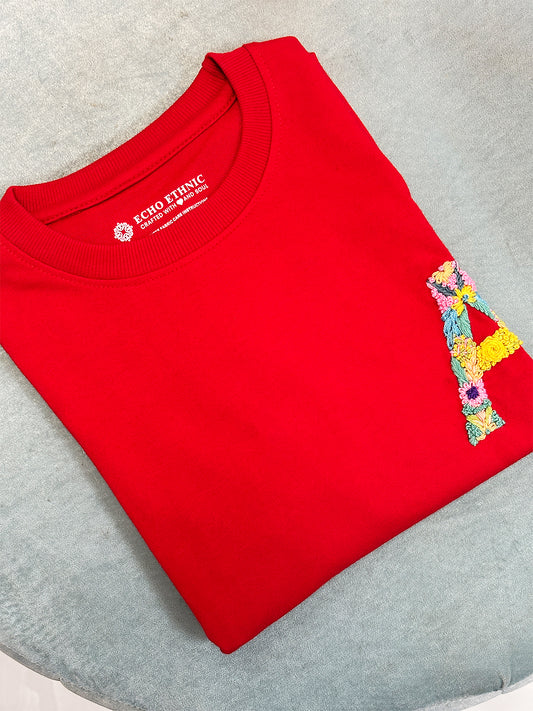 Red - Unisex Hand Embroidered Oversize T-Shirt