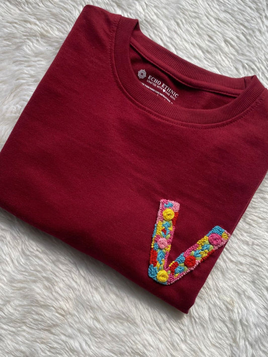 Maroon - Unisex Hand Embroidered Oversize T-shirt